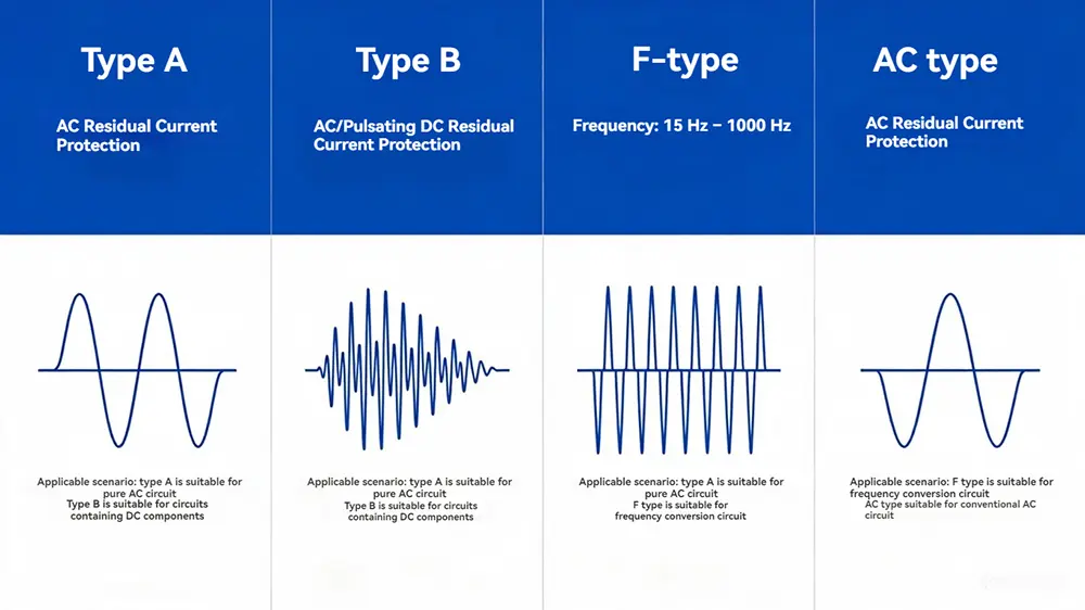 | F/B type | AC, pulserende DC & udglattet DC (Type B); til solcelleanlæg, ladebunker & industriel automation. | |